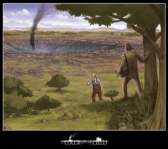 Más concretamente en el relato de "El color que cayó del cielo". Bajo ese título se esconde uno de los relatos más icónicos del terror: Un meteorito que cae en una granja y trae "algo" dentro. Es una fórmula que ha explotado la serie B pero al hacer una lectura del relato original uno encuentra imágenes muy sugerentes que no se han llevado todavía a un medio distinto como es el cine o el videojuego.
