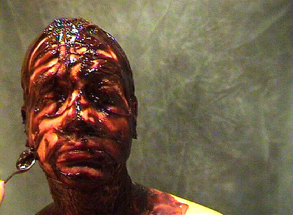 La práctica del engullir, no tanto la comida, es el perfecto antidepresivo. La comida pasa a segundo plano, funciona como elemento mediador para la auto-cura, como dispositivo de desahogo. Para desarrollar este concepto se ha recurrido a trece artistas quienes, a través de la videoperformance, utilizan el acto de comer/beber como un ejercicio que busca el alivio. Sin lugar a dudas, un auténtico ritual curativo.