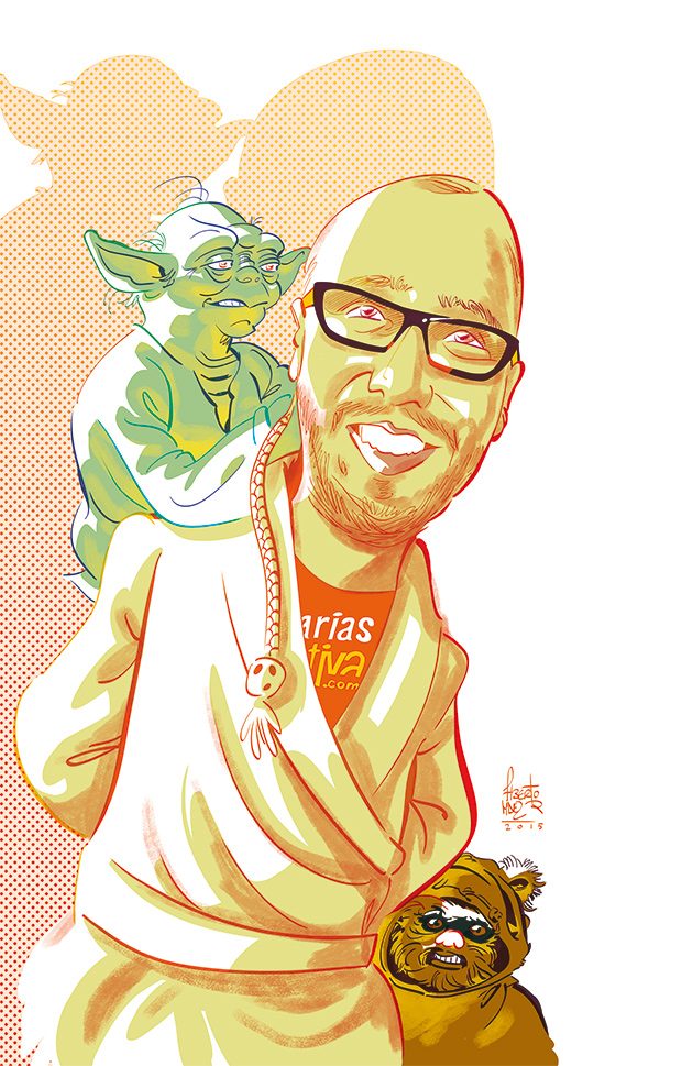 Te conservas en la juventud eterna, y todos sabemos que eres el gran Darth Vader, padre de todos los que han acostado su cabeza en tu regazo… ¿Para cuando eso de ser padre?!!? ¿¿No crees que se te puede pasar el arroz?!?! Y ahora hablando de diseño… Eres una persona, multidisciplinar, y aún después de tanto tiempo dedicándote al gremio, sigues en modo esponja, enseñas pero a la vez aprendes… Aportas mucho a la gente que tiene la suerte de trabajar codo a codo contigo… ¿Te has planteado alguna vez escribir algún libro, que hable de tu visión o la visión de muchos diseñadores de Canarias, sobre el diseño? En cuanto a nivel de experiencia o por aprendizaje, ¿crees que sería un proyecto que evolucionaría?