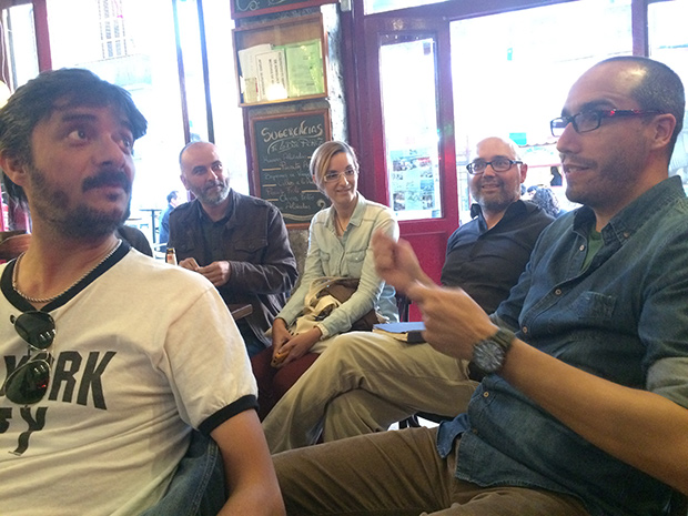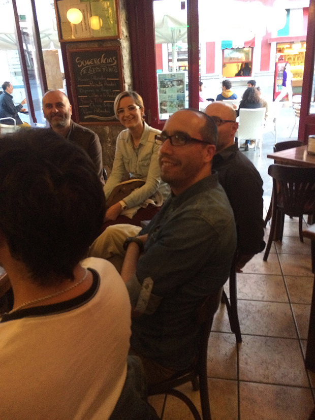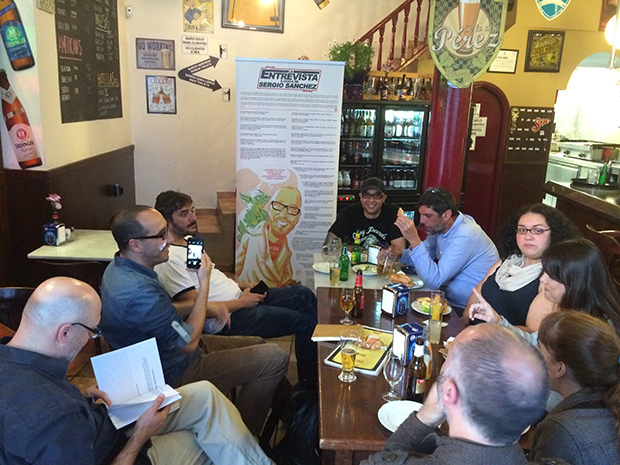 Foto de grupo de los truhanes que me dieron la fiesta sorpresa. Luego se unieron unos cuantos más. De izquierda a derecha: Chedey Díaz, Juana Glezcón, José Mendoza, Akram Muti, Fer Torres, Nayra Quesada, Alberto Hdez y Ana. Abajo: Yesenia (HerbieCans), el gafapastas entrevistado y Sebastián de Dos por Dos Grupo Imagen.