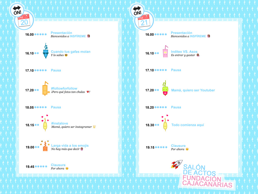 INSPÍREME son unas jornadas de comunicación y moda creadas por unos jóvenes apasionados por la comunicación, el marketing y la moda. Tendrá lugar los días 20 y 21 de enero de 2016 en el Salón de Actos del Espacio Cultural CajaCanarias.