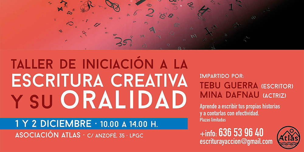 Se celebrará los próximos 1 y 2 de diciembre y está destinado a personas que quieran aprender las herramientas básicas para escribir un texto (poesía, escritura libre, relato corto o cuento corto) y para trabajar la expresión oral del mismo independientemente del nivel.