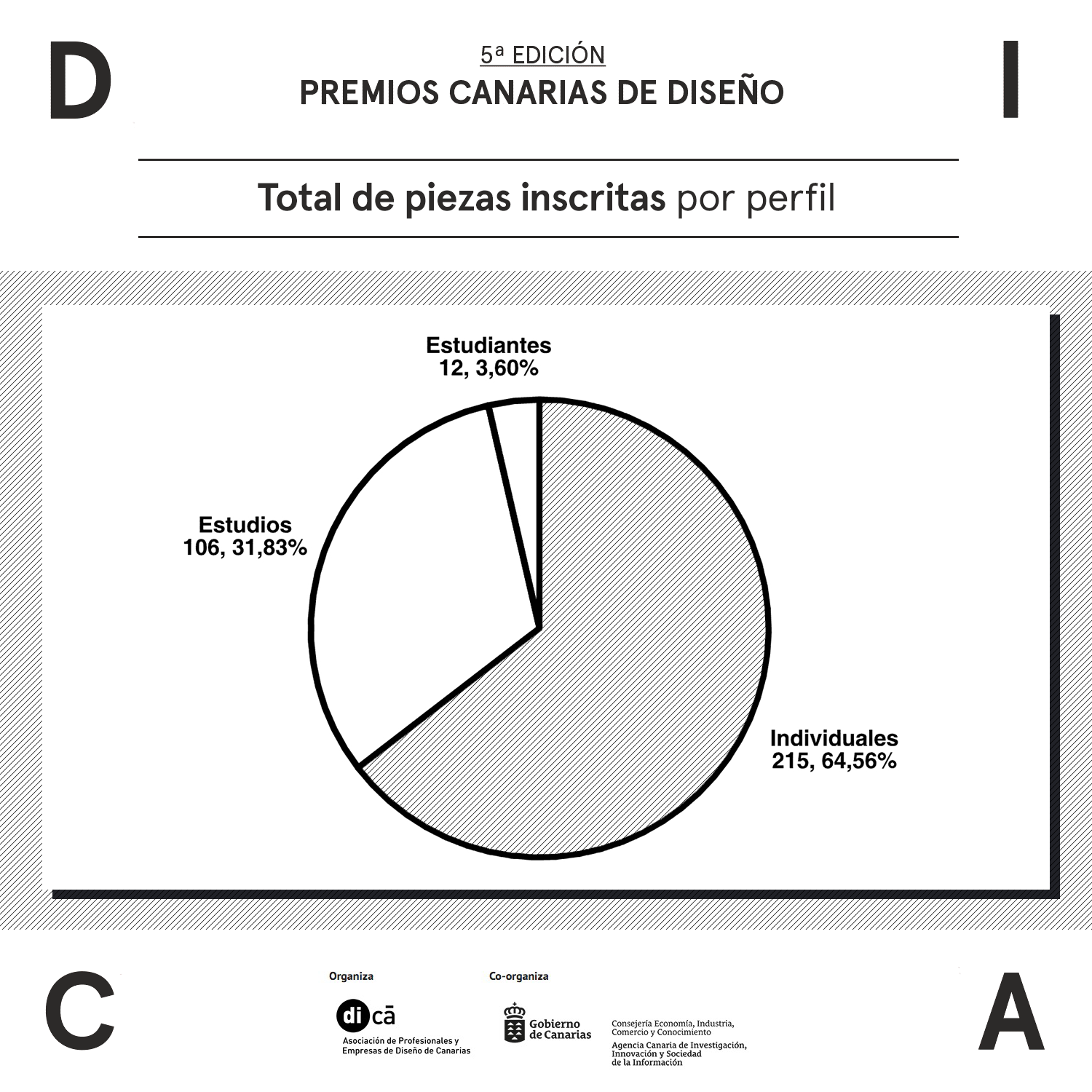 Un total de 333 trabajos se han inscrito en la quinta edición de los Premios Canarias de Diseño, que la Asociación de Profesionales de Diseño de Canarias (di-Ca) co-organiza junto a la Agencia Canaria de Investigación, Innovación y Sociedad de la Información (ACIISI) del Gobierno de Canarias.