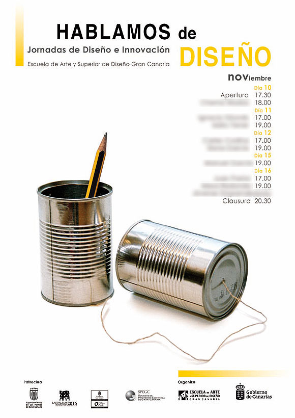 Entre los próximos 10 y 16 de noviembre, como parte del programa de Distrito Cultura, se celebrará en la Escuela de Arte y Superior de Diseño Gran Canaria la I Jornadas de Diseño e Innovación, Hablamos de Diseño. Este simposio acercará el trabajo de notorios expertos en las diferentes áreas del diseño tanto a los alumnos pertenecientes a disciplinas y profesiones que se constituyen en torno a este mundo, como a todo aquel que quiera participar de forma totalmente gratuita en este observatorio privilegiado a través del que conocer a profesionales en activo.