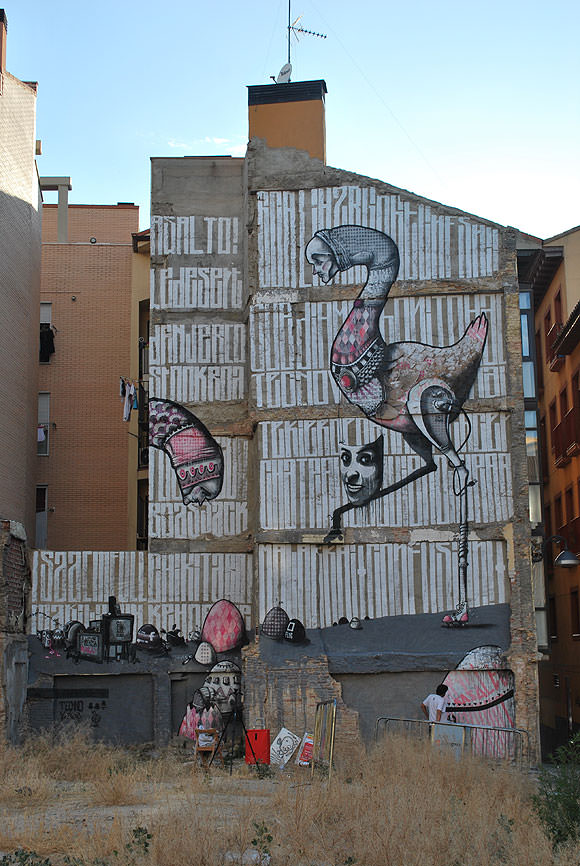 F: Hasta la fecha ha habido muy buena relación con las instituciones; nosotros siempre hemos tenido el empeño de situar el arte urbano desde la integración y nunca desde la imposición. Por eso creemos que si ha habido alguna aceptación social, imagino que es por proponer soluciones creativas a nuestro entorno.