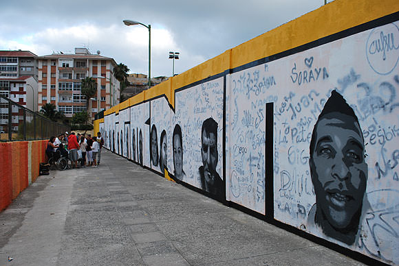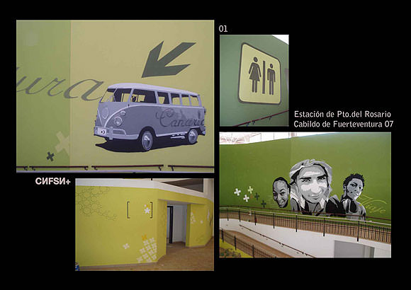 F. Talleres de graffiti para La Fundación Canaria Mapfre Guanarteme en Tenerife y Las Palmas de Gran Canaria y una Intervención en Sicilia,(italia), que nos tiene bastante entusiasmados porque nos han dado libertad para intervenir en un espacio marcado por la cruda inmigración del norte de África.