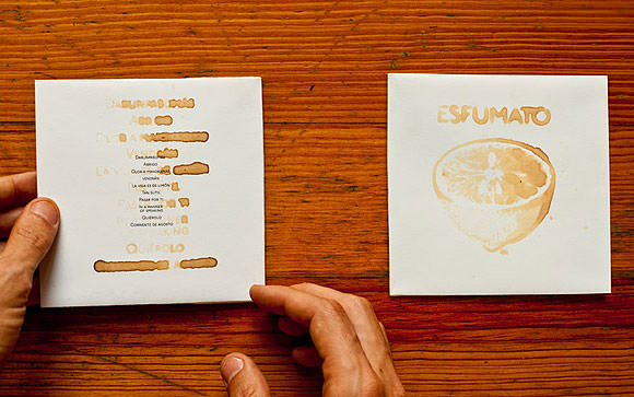 Hay un post en la página de Esfumato donde escribí un texto sobre esto y hay fotos del proceso Para mí la canción más emblemática del disco se titula ‘La vida es de limón’. El disco se hace de manera artesanal, estampando con zumo de limón y horneándolo, como las cartas con tinta invisible. El resultado es que todos los ejemplares son diferentes, con un caracter pictórico muy interesante. Una locura de producción, pero yo me lo busqué.