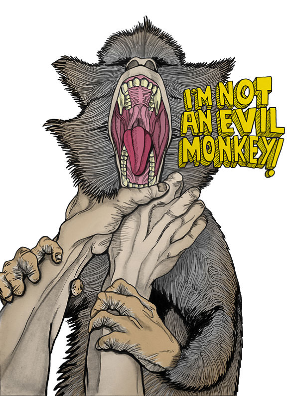 Buuf que difícil es esto… Se trata en la mayoría de las ocasiones de proyecciones de mis pensamientos, deseos, necesidades, sentimientos etc. en definitiva ideas que tengo en mi cabeza y que de alguna forma salen en forma de dibujos, esos son aquellos casos en los que son proyectos personales. Cuando se trata de encargos intento llevar el concepto a mi terreno pero siempre haciendo prevalecer el mensaje original, lo que pretende emitir en la pieza en cuestión. Formalmente se trata de un trabajo sucio, visceral, descarnado sin academicismos y no sé, ya no conozco más palabras para hacerme el listo.
