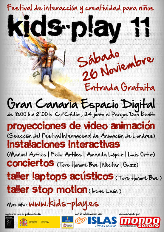 Dis-play presenta Kids-play, un mini-festival paralelo dirigido a los niños que se celebrará el 26 de noviembre que contará con diferentes actividades abiertas a todos los públicos como talleres, instalaciones audiovisuales interactivas, murales participativos, proyecciones de animación infantil y conciertos donde niños y padres serán los protagonistas.