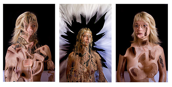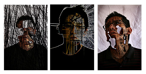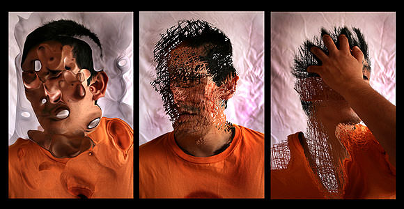 Si, es cierto, hace dos años decidí para una exposición individual titulada Retratos Infinitos alejarme de mis autorretratos, y tome como modelos a tres mujeres y tres hombres. Fue una experiencia interesante, arriesgada y positiva luego del resultado, ya que quería saber que es lo surgía de eso, de la conjunción de mi modo de trabajar, pero esta vez, sobre las imágenes de otras personas. El resultado fue que muchas personas se quedaron asombradas por la técnica y el efecto visual, algunos me hablaban de fotografía 3 D, o de que si había pintado sobre la imagen, pero no. Actualmente el programa Photoshop, tiene una serie de filtros los cuales te permiten generar hundimientos y extracciones, en este caso de partes el cuerpo y alterar hasta el hartazgo una forma.