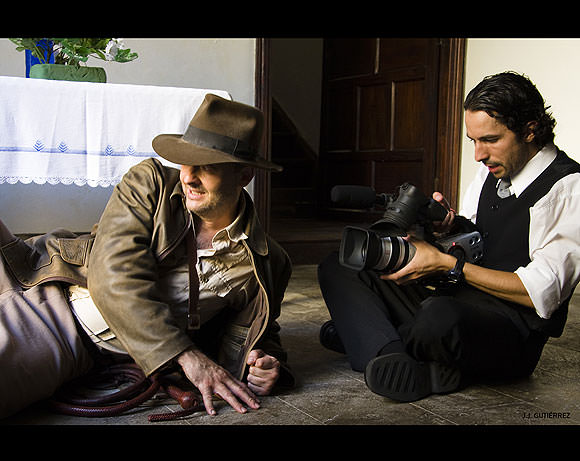 Aunque yo interpreté a Indy en la primera aventura, Rafa Rodríguez es mi Indiana Jones personal. Es un gran cinéfilo, muy creativo, una maravillosa persona y sin duda, uno de los pilares importantes para la creación de estos cortos. Rafa además de actuar, también se ha encargado de la creación del atrezzo y decorados, diseñar las coreografías, etc. Siempre he dicho, que llevar a cabo estos cortos, fue meternos de verdad en una aventura. Y lo que está claro es que Rafa, toda la gente que ha colaborado en estos años y yo, nos lo hemos pasado en grande haciéndolas.