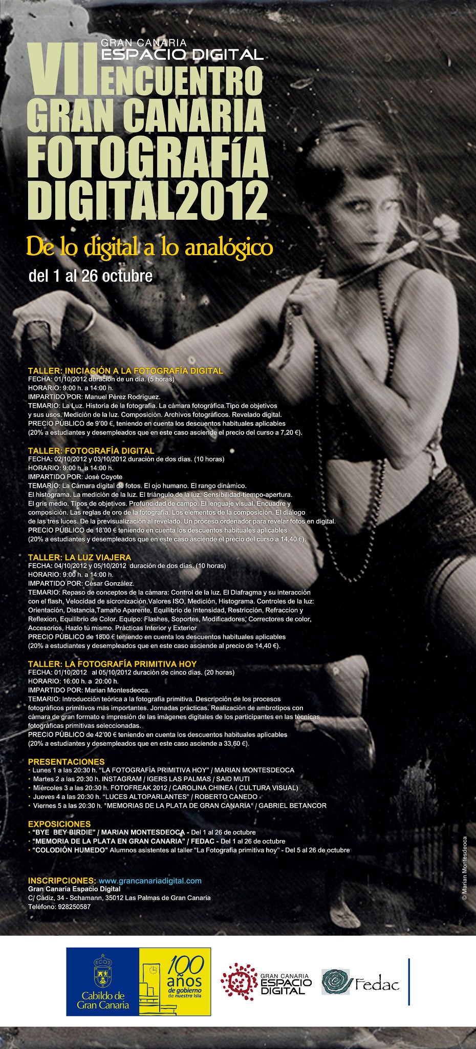 Lunes día 1 a las 20.30 horas presentación La Fotografía Primitiva hoy. Marian Montesdeoca.