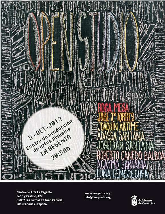 El Centro de Arte La Regenta llevará a cabo mañana viernes, 28 de septiembre (18.00h), una nueva sesión de la iniciativa Opening Studio que busca impulsar a los artistas emergentes que trabajan en su Espacio de Producción. Se trata de un encuentro profesional en el que los creadores que disfrutan de estos talleres (Rosa Mª Rodríguez Mesa, José Juan Torres de León, Joaquín Artime Pinilla, Adassa Santana Castro, José Francisco Santana Torres y Roberto Canedo Balboa) puedan contactar y dar a conocer sus trabajos actuales y sus proyectos artísticos de futuro a personalidades destacadas del ámbito cultural de las islas.