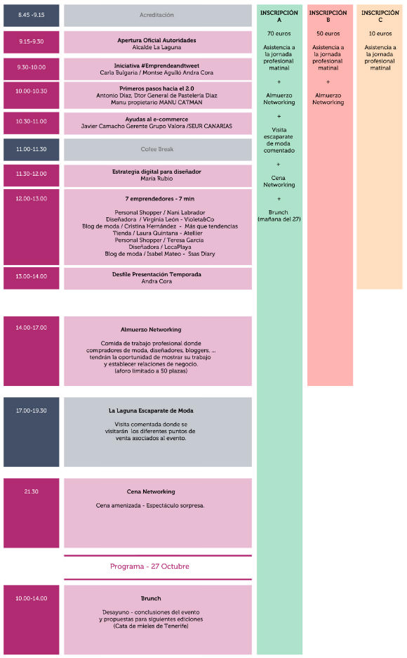 El próximo viernes 26 de octubre se celebrará en la ciudad de San Cristobal de La Laguna, el II Encuentro Nacional de Diseño, Moda y Redes Sociales denominado #EmprendeandTweet. Este será la segunda edición de un encuentro que comenzó en Madrid el pasado año. En esa ocasión se reunieron cincuenta empresarios emprendedores de toda España que se conocieron a través de las redes sociales.