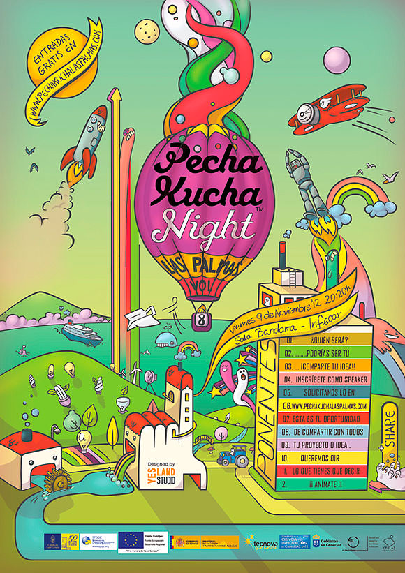 Se desarrollará el viernes 09 de noviembre de 2012 en la Sala Bandama, INFECAR, Las Palmas de Gran Canaria a las 20:20 horas. Pecha Kucha Las Palmas vol 08 está organizado por la Sociedad de Promoción Económica de Gran Canaria, bajo la iniciativa Tecnova GC, y queda enmarcado en las Semanas de la Ciencia y la Innovación en Canarias 2012 que coordina la Agencia Canaria de Investigación, Innovación, y Sociedad de la Información del Gobierno de Canarias (ACIISI).