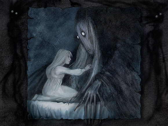 Desde pequeña coleccionaba cuentos de hadas y fantasmas (porque son de una forma o de otra lo mismo). Mi colección llegó a ser bastante seria (y mágica). Además desde muy pequeña sufro de un desorden llamado "parálisis del sueño" esto provoca una desincronía entre el cuerpo y el cerebro, dormir y despertar que provoca pesadillas, y experiencias extrañas a la hora de despertarse o de quedarse dormido. Es algo que puede explicarse de una forma fisiológica y racional, pero que desde el punto de vista sensitivo se experimenta como lago paranormal y normalmente aterrador. Esto, como niña, marcó mucho mi forma de experimentar e interpretar mis propias fantasías, sueños y temores. Ahora esas criaturas e incluso esas pesadillas forman parte de mi universo. He tratado de otorgarles belleza, una belleza extraña y espectral. No hay contraste si no hay luz, pero tampoco si no hay sombras.