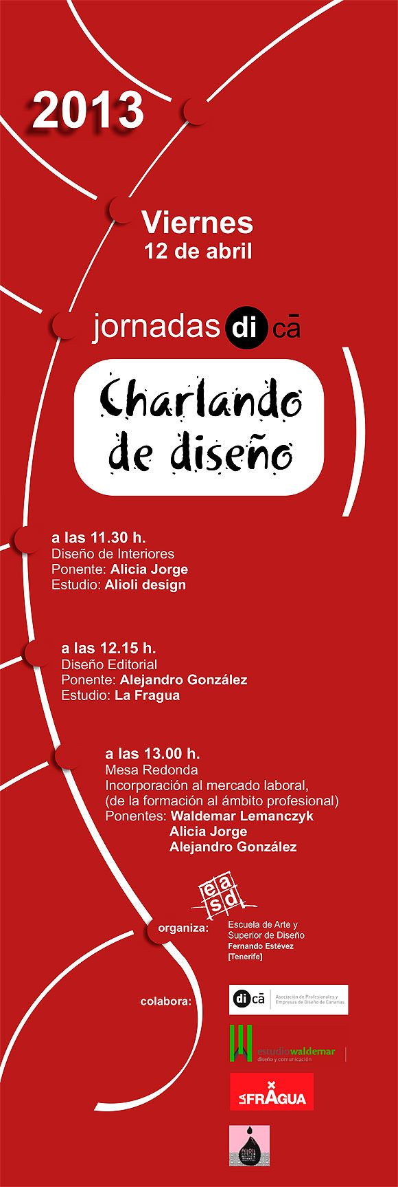 La Escuela de Arte y Superior de Diseño Fernando Estévez (Tenerife) y la Asociación de Profesionales y Empresas de Diseño de Canarias (di-Ca), en su compromiso educativo y divulgativo del diseño en las islas, organizan unas jornadas el próximo viernes 12 de abril.