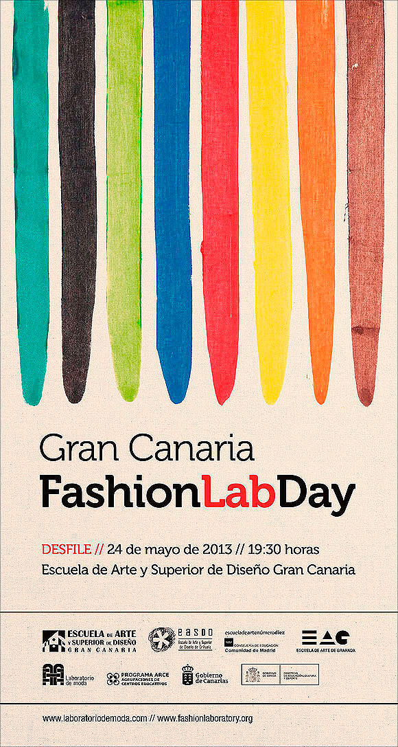 Esta actividad es una muestra de los resultados del proyecto Laboratorio de moda, que nació con la idea de generar y compartir material y recursos didácticos referentes a la práctica de la tecnología textil en el ámbito de las enseñanzas de Artes Plásticas y Diseño. Docentes y alumnos de las escuelas de Arte y Superior de Diseño de Granada, Madrid, Orihuela y Gran Canaria, trabajan desde noviembre de 2011 en este proyecto común.