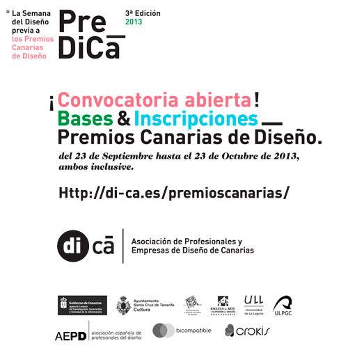 La Asociación de Profesionales y Empresas de Diseño de Canarias (di-Ca) convoca desde hoy día 23 de septiembre hasta el próximo día 23 de octubre 2013 a los profesionales y estudiantes de diseño de las islas a presentarse.