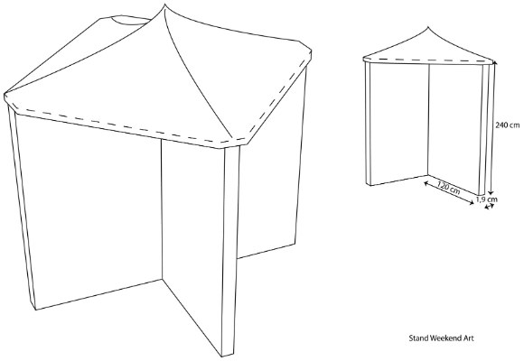 3) Las medias del stand son de 240cm (de alto) x 120cm ( por cada lado), con techo impermeable y con instalación de luz eléctrica.