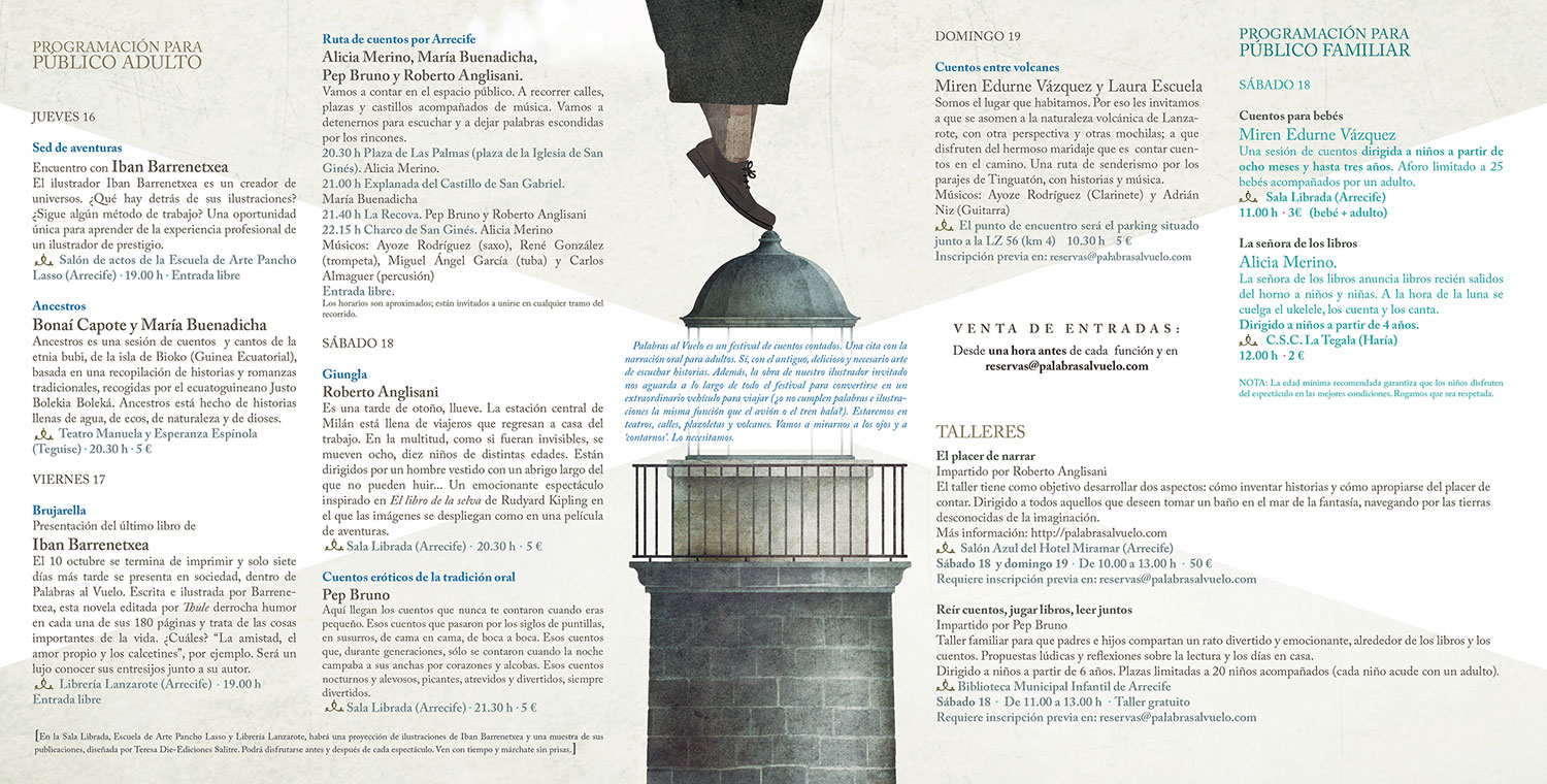 Aunque algunas actividades son gratuitas, tienen plazas limitadas por lo que será indispensable reservar plaza mediante un correo electrónico a reservas@palabrasalvuelo.com El plazo de inscripciones está abierto desde hoy.